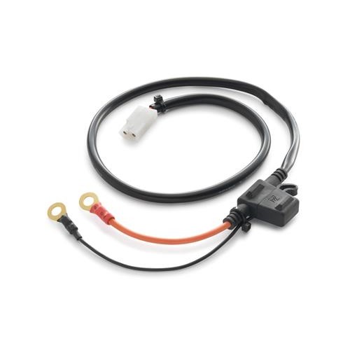 Recomendamos utilizar este conjunto de cables cuando se instalan varios dispositivos eléctricos. Además, con este cableado adicional podrás instalar puños calefactables o un ventilador incluso en tu TC o FC. Atención: Los dispositivos se conectan ahora directamente a la batería. La batería se agotará con el motor apagado si no se desconectan. Disponible opcionalmente: Cable en Y 777.11.979.010 o 777.11.979.044.